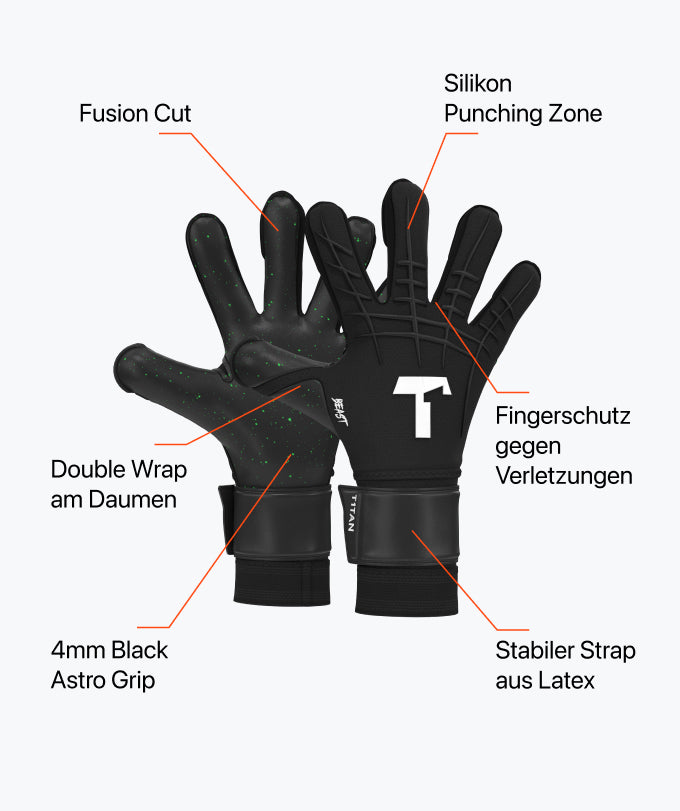 Du bist das Biest auf der Linie. Du hast das Black Beast 3.0 an den Händen. Der Kunstrasen kann dir nichts. Und die Stürmer erst recht nicht. Mehr Widerstand geht nicht. Dank Fusion Cut mit Flat Cut an den Fingerspitzen und 4mm Astro Grip Haftschaum ist dieser Glove deutlich resistenter. Der perfekte Griff für Kunstrasen und Hartplatz. Krall’ ihn und den nächsten Ball gleich mit!