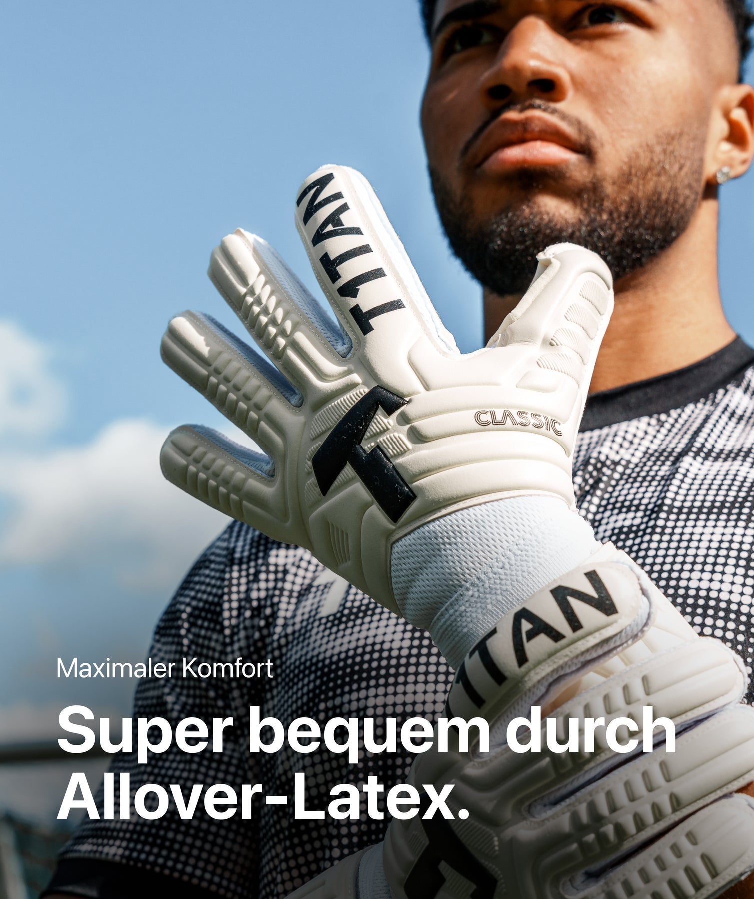 Inspiriert von unseren Top-Modellen: Dank LATEX-ALLOVER Bauweise ist der Handschuh bequem und leicht. Optimal, wenn das Training mal länger dauert oder das Spiel in die Verlängerung geht. -