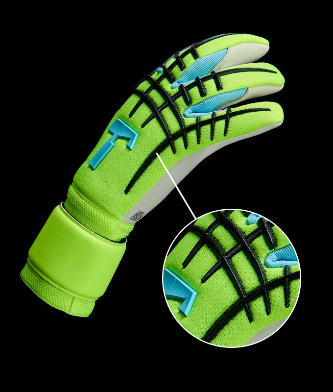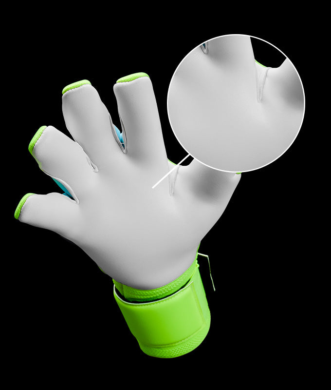 Die Kombination aus Rolled Fingers und Flat Cut sorgt für eine extrem bequeme Passform und mehr Kontaktfläche am Ball.