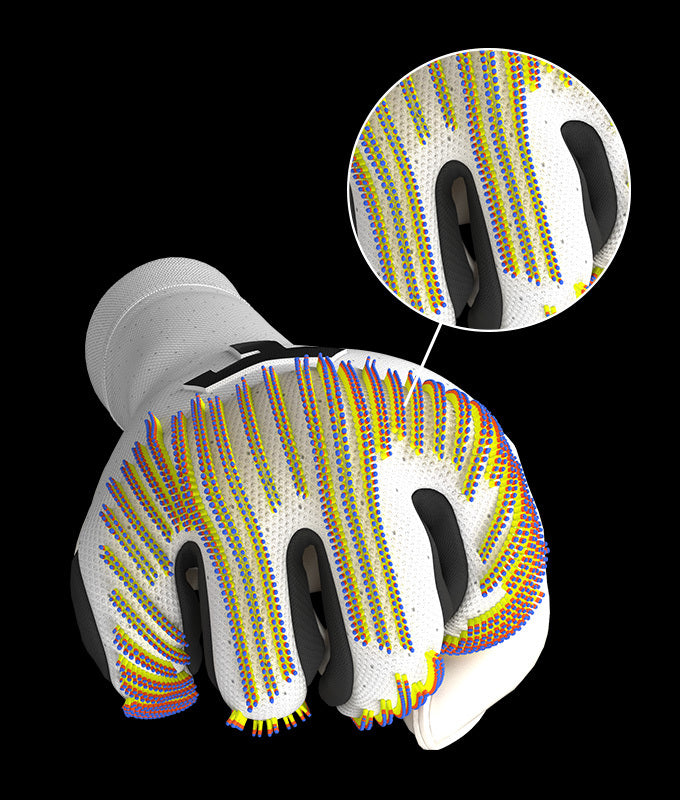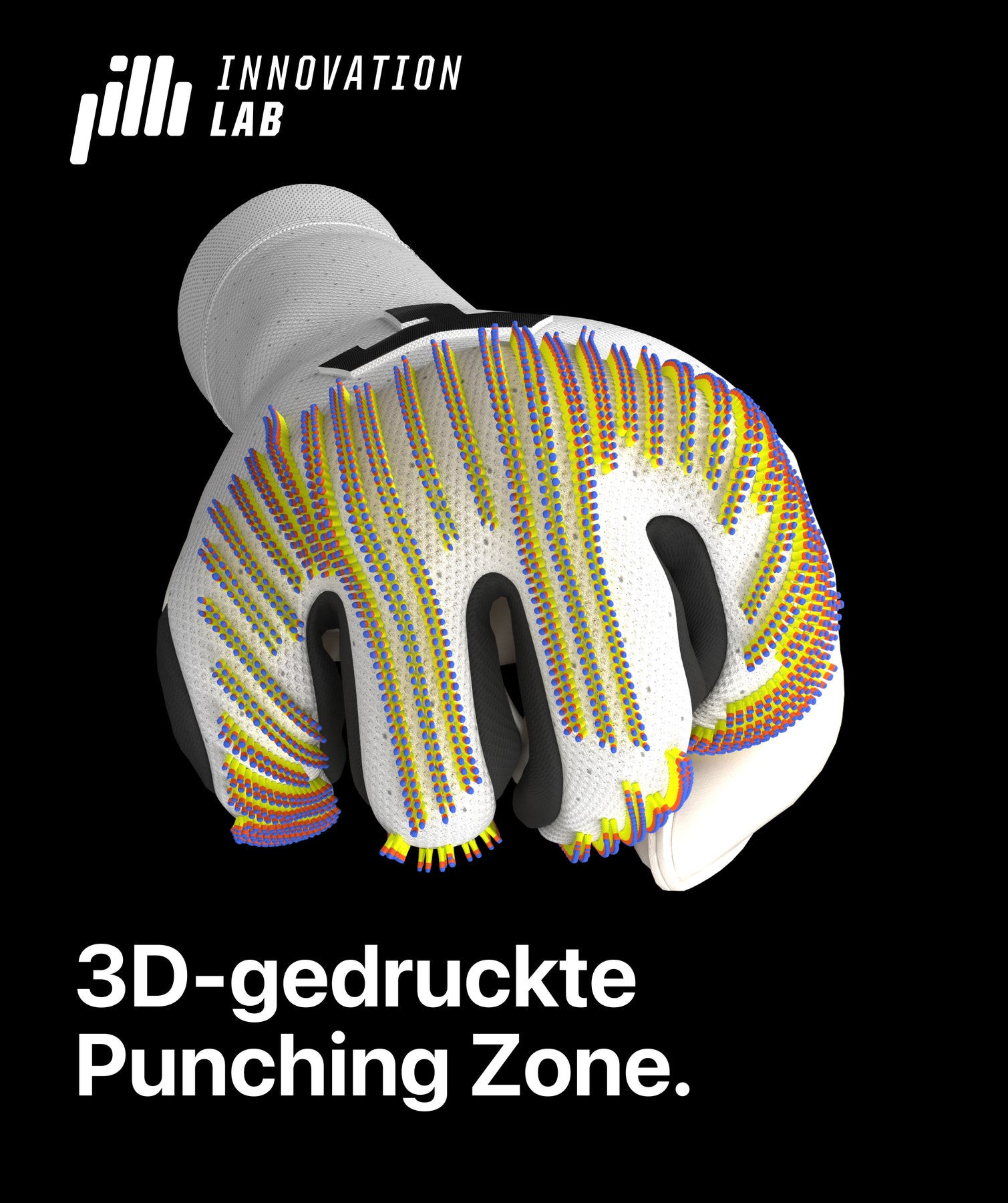 Innovative Weltneuheit: 3D-gedruckte Punching Zone mit wechselndem Flip-Flop-Look für perfekten Grip und eine Optik, die immer in Bewegung bleibt.