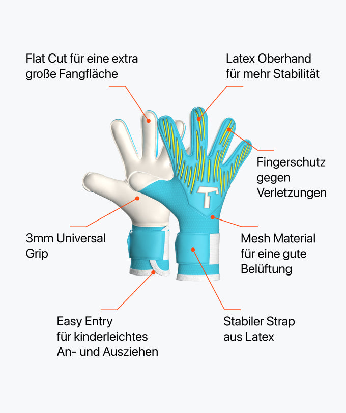 Dank der außen sitzenden Nähte vergrößert sich die Fangfläche deutlich und vereinfacht so das Fangen und Festhalten des Balls. -
